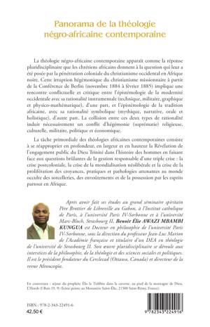 La théologie négro-africaine contemporaine apparaît comme la réponse pluridisciplinaire que les chrétiens africains donnent à la question qui leur a été posée par la pénétration coloniale du christianisme occidental en Afrique noire. La tâche primordiale des théologies africaines contemporaines consiste à se réapproprier la Révélation de l’engagement public du Dieu Trinité dans l’histoire des hommes en faisant face aux questions brûlantes de la gestion responsable d’une triple crise : la crise postcoloniale, la crise de la mondialisation néolibérale et la crise de la prolifération des croyances, pratiques et pathologies attenantes au monde occulte des sorcelleries, des envoûtements et de la possession par les esprits partout en Afrique.
