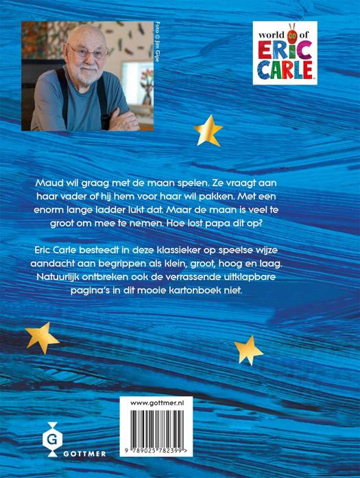 Dit gebonden kartonboek is een speciale jubileumuitgave van 'Papa, pak je de maan voor mij?' Deze prachtige klassieker, van de maker van 'Rupsje Nooitgenoeg' Eric Carle, gaat over begrippen als klein, groot, hoog en laag. In 2025 is het 40 jaar geleden dat het prentenboek 'Papa, pak je de maan voor mij?' verscheen. Het is uitgegroeid tot een favoriet slaapverhaaltje om voor te lezen aan kinderen. Natuurlijk ontbreken de vier verrassende uitklappers ook in deze mooie uitgave niet.