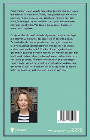 Dr. Machin baseert zich in dit werk op haar eigen onderzoek en op de laatste inzichten uit de genetica, neurowetenschappen en psychologie. Papa worden vertelt het prachtige