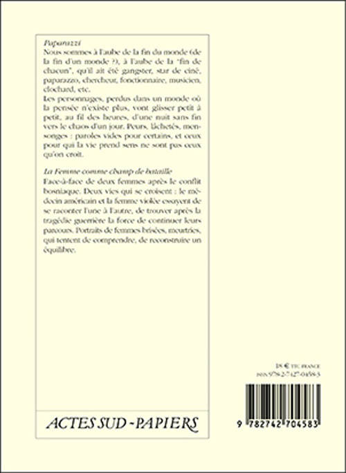 Paparazzi : Vingt-quatre personnages désorientés et désincarnés se croisent et révèlent leurs peurs, leurs lâchetés, leurs mensonges. Ils tentent de donner un sens à leur vie...
