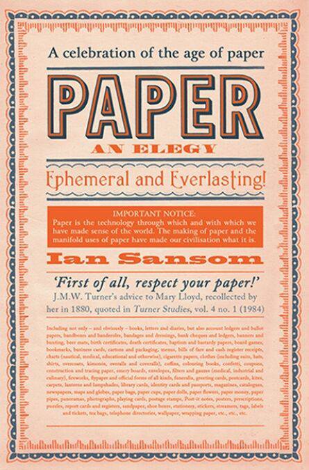 But the age of paper is coming to an end. E-books regularly outsell physical books. E-tickets replace the paper variety. Archives are digitized. The world we know was made from paper, and yet everywhere we look, paper is beginning to disappear. As we enter a world beyond paper, Ian Sansom explores the paradoxes of the greatest of man-made materials and shows how some kinds of paper, and the ghosts and shadows of paper, will always be with us.