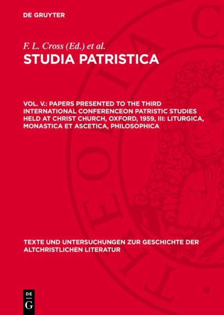 Papers Presented to the Third International Conferenceon Patristic Studies Held at Christ Church, Oxford, 1959, III: Liturgica, Monastica Et Ascetica, Philosophica