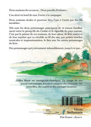 Deux maisons de vacances… Deux paradis d’enfance… L’un situé en bord de mer, l’autre à la campagne. Deux maisons rivales et pourtant liées l’une à l’autre par des fils invisibles. Tels sont les deux personnages principaux de ce roman familial, ancré entre la presqu’île du Croisic et le vignoble du pays nantais. C’est par le prisme de ces maisons, de leur odeur, de leur saveur et de leur mystère que va s’établir au fil des ans, par petites touches musicales et impressionnistes, le lien avec les autres personnages du livre. Des personnages qui y retournent inlassablement, jusqu’à ce que…