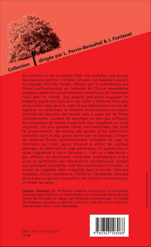 Au moment où de nombreux États sont accusés de mauvaise gestion, l'affaire Cahuzac, les Panama's papers, le LuxLeaks, etc. ont mis en évidence l'importance de l'évitement fiscal dans le monde. Des experts spécialisés engagent un lobbying auprès des États pour les inciter à diminuer leurs taux d'imposition réels dans le cadre d'une libéralisation accrue des capitaux. Cependant, lorsque les avantages ne sont pas suffisants, des procédures de fraude fiscale sont suggérées en toute impunité. Face aux scandales, l'U.E. et l'OCDE proposent des solutions collectives, solutions que cet ouvrage entend exposer.