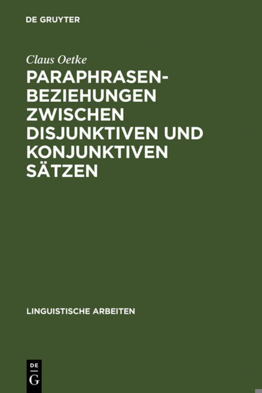 Paraphrasenbeziehungen Zwischen Disjunktiven Und Konjunktiven Sätzen