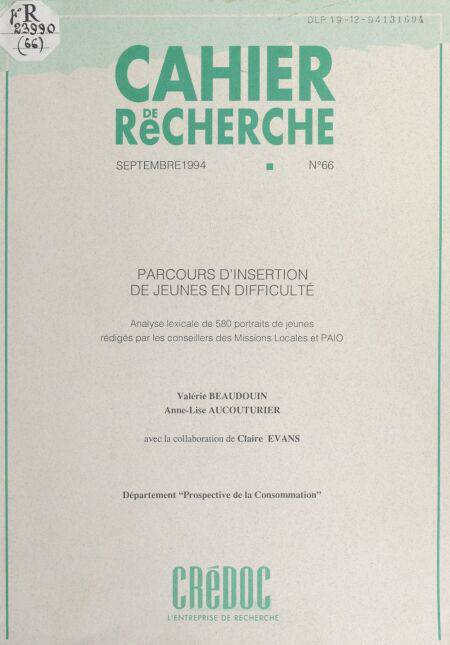 Étude réalisée à la demande de la Délégation interministérielle à l'insertion des jeunes