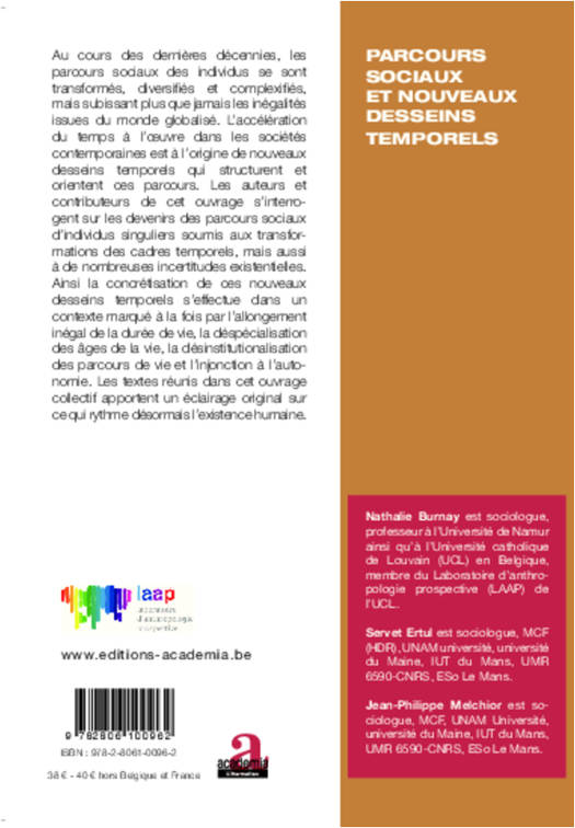 Ces dernières décennies, les parcours sociaux des individus se sont transformés, diversifiés et complexifiés, mais subissent plus que jamais les inégalités issues du monde globalisé. De nouveaux desseins temporels structurent et orientent ces parcours, dans un contexte marqué par l'allongement inégal de la durée de vie, la despécialisation des âges, la désinstitutionnalisation des parcours de vie et l'injonction à l'autonomie. Un éclairage original sur ce qui rythme désormais l'existence humaine.