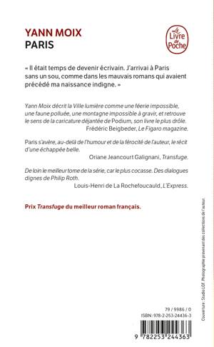 Yann Moix décrit la Ville lumière comme une féerie impossible, une faune polluée, une montagne impossible à gravir, et retrouve le sens de la caricature déjantée de Podium, son livre le plus drôle. Frédéric Beigbeder, Le Figaro magazine.