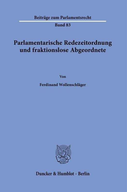 Die parlamentarische Rede(zeit)ordnung im Allgemeinen und die Position fraktionsloser Abgeordneter in dieser im Besonderen stellen zentrale Fragen des Parlamentsrechts und der Parlamentspraxis dar. Die besondere Herausforderung besteht darin, fraktionslosen Abgeordneten einerseits eine angemessene Ausubung ihres verfassungsrechtlich verburgten Rederechts zu ermoglichen, andererseits aber Anliegen des Proporzes und der Funktionsfahigkeit des Parlaments Rechnung zu tragen. Dieses Spannungsfeld hat die in einigen deutschen Parlamenten zu verzeichnende Zunahme der Zahl fraktionsloser Abgeordneter verscharft. Vor diesem Hintergrund entfaltet die vorliegende Schrift erstmals monographisch den verfassungsrechtlichen Rahmen der parlamentarischen Rede(zeit)ordnung und erortert aus verfassungsrechtlicher und verfassungspolitischer Warte, welche Optionen bestehen, um fraktionslosen Abgeordneten Redezeiten zuzuteilen.