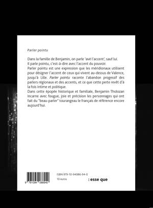 « Nombreux sont les provinciaux qui, une fois arrivés à Paris, ont dû gommer leur accent pour se fondre dans la masse en pratiquant un français « neutre ». Accompagné sur scène par un musicien, le coauteur de ce spectacle, Benjamin Tholozan, est de ceux-là. Originaire de Nîmes, le quadragénaire devenu Parisien « parle pointu », comme aimait à le dire son grand-père, pour désigner cette façon plate de dire les mots, dépourvue de la musicalité chantante caractéristique des Méridionaux. Flamboyant conteur, c’est avec humour que l’artiste remonte le fil de son accent disparu, retrace l’origine de la langue française. Un spectacle qui rend ainsi compte de notre manière de parler et de ses conséquences, plus importantes qu’on ne le croit. Derrière les questions a priori banales que se pose le personnage joué par Tholozan, se cache une violence, un passé aussi douloureux que passionnant, qui concerne finalement tout un chacun ou presque. » Kilian Orain Télérama