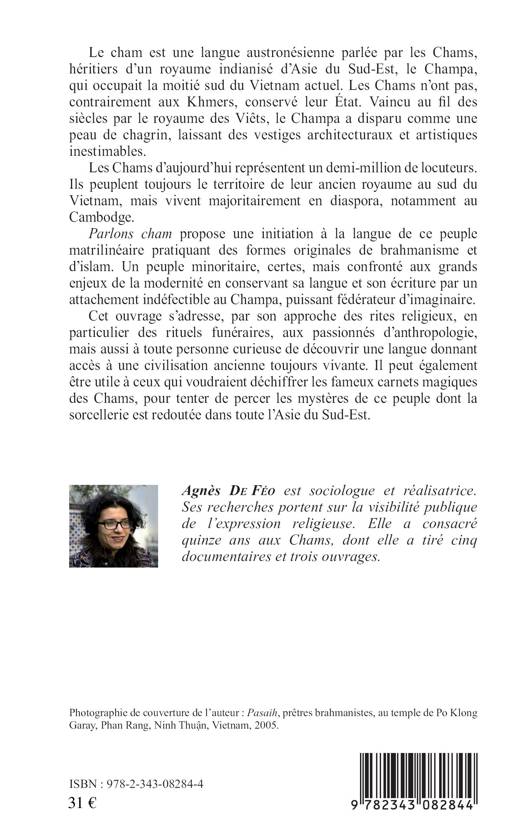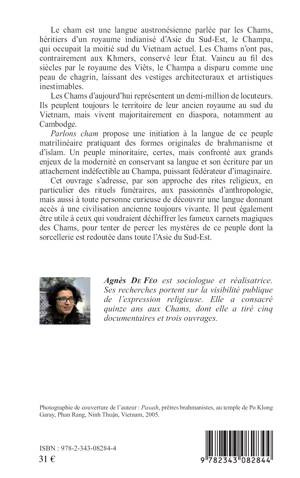 Le cham est une langue austronésienne parlée par les Chams (soit 1/2 million de locuteurs), héritiers d'un royaume indianisé d'Asie du Sud-Est, le Champa. Vaincu au fil des siècles par le royaume des Viêts, le Champa a disparu comme une peau de chagrin, laissant des vestiges architecturaux et artistiques inestimables. Cet ouvrage s'adresse, par son approche des rites religieux, aux passionnés d'anthropologie mais aussi à toute personne curieuse de découvrir une langue donnant accès à une civilisation ancienne toujours vivante.