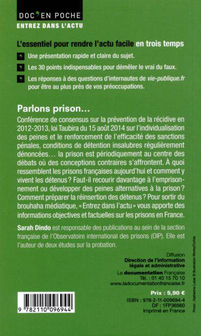 Conférence de consensus sur la prévention de la récidive en 2012-2013, loi Taubira du 15 août 2014 sur l'individualisation des peines et le renforcement de l'efficacité des sanctions pénales, conditions de détention insalubres régulièrement dénoncées... la prison est périodiquement au centre des débats où des conceptions contraires s'affrontent. À quoi ressemblent les prisons françaises aujourd'hui et comment y vivent les détenus ? Faut-il recourir davantage à l'emprisonnement ou développer des peines alternatives à la prison ? Comment préparer la réinsertion des détenus ? Pour sortir du brouhaha médiatique, « Entrez dans l'actu » vous apporte des informations objectives et factuelles sur les prisons en France.