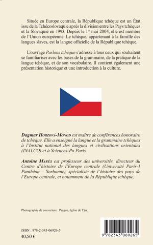 Située en Europe centrale, la République tchèque est un État issu de la Tchécoslovaquie après la division entre les pays tchèques et la Slovaquie en 1993. Le tchèque est la langue officielle de la République tchèque. L’ouvrage Parlons tchèque s’adresse à tous ceux qui souhaitent se familiariser avec les bases de la grammaire, de la pratique de la langue tchèque, et de son vocabulaire. Il contient également une présentation historique et une introduction à la culture.