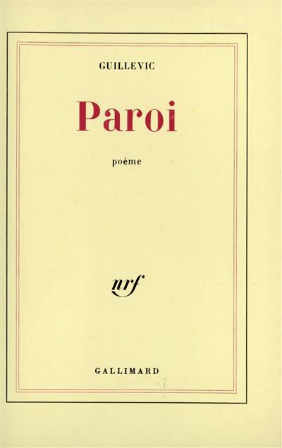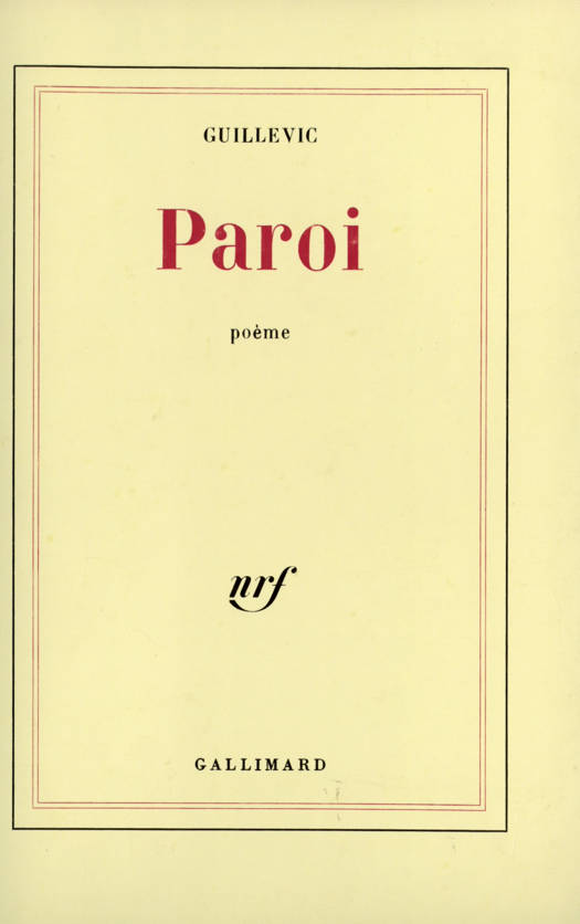 "Paroi est, comme Carnac, comme Ville, notamment un poème formé d'une suite de poèmes-fragments. Mais, cette fois, il ne s'agit pas d'une exploration du monde extérieur ; c'est une longue rumination d'obsessions ayant trait à la présence intime d'une espèce de paroi. Les yeux fermés, un film se déroule, un monologue se rabâche sur tous les tons, du cocasse au tragique, pendant l'essai, peut-être épique, de toucher, de franchir : quelles frontières ?" Guillevic.