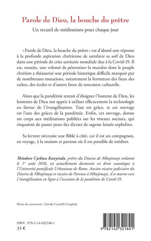 Cet ouvrage est une réponse à la profonde aspiration chrétienne de satisfaire sa soif de Dieu dans une période de crise sanitaire mondiale due à la Covid-19. Il est, ensuite, une volonté de pérenniser la manière dont le peuple chrétien a thésaurisé une période historique difficile marquée par de nombreuses mutations, notamment la fermeture des lieux des cultes, des écoles et d'autres lieux de rencontre culturelle. lors que la pandémie tentait d'éloigner l'homme de Dieu, les hommes de Dieu ont appris à utiliser efficacement la technologie en faveur de l'évangélisation. Tout est grâce, et cet ouvrage est l'une des grâces de la pandémie. Enfin, cet ouvrage, donne un corps aux méditations publiées sur les réseaux sociaux, qui risquaient de passer pour des dictats de sagesse laissés orphelins. Sa lecture nécessite une Bible à côté, car il est un compagnon, en voyage, à la maison et partout où il est possible de méditer.