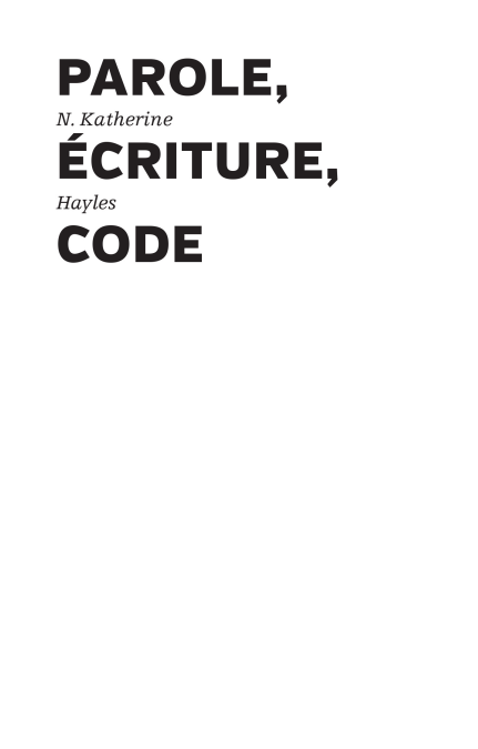 Une réflexion sur la nécessité d'une pensée du code en tant qu'il structure notre vision du monde au même titre que la parole et l'écriture. Fascinée par ce qu'elle considère comme des similarités troublantes entre les théories littéraires et les modèles scientifiques contemporains, et forte d'une double compétence dans ces deux domaines, N. Katherine Hayles étudie les convergences entre littérature, science et technologie. Plus précisément, ses recherches se sont orientées vers les nouveaux médias, et s'inscrivent pleinement dans le champ des (post)humanités numériques dont elle est l'une des théoriciennes américaines les plus influentes. Dans le présent essai, elle s'interroge sur la nécessité d'une pensée du code en tant qu'il structure notre vision du monde au même titre que la parole et l'écriture.