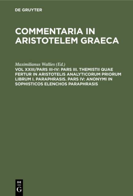No detailed description available for "Pars III. Themistii quae fertur in Aristotelis analyticorum priorum librum I. Paraphrasis. Pars IV: Anonymi in Sophisticos elenchos Paraphrasis".