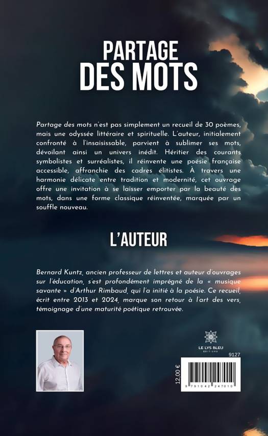 Partage des mots n'est pas simplement un recueil de 30 poèmes, mais une odyssée littéraire et spirituelle. L'auteur, initialement confronté à l'insaisissable, parvient à sublimer ses mots, dévoilant ainsi un univers inédit. Héritier des courants symbolistes et surréalistes, il réinvente une poésie française accessible, affranchie des cadres élitistes. À travers une harmonie délicate entre tradition et modernité, cet ouvrage offre une invitation à se laisser emporter par la beauté des mots, dans une forme classique réinventée, marquée par un souffle nouveau.