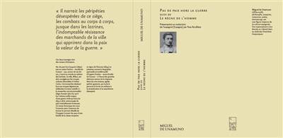 Ce volume regroupe les romans d’apprentissage d’Unamuno. Pas de paix hors la guerre (1897) décrit la ville de Bilbao assiégée en 1874 par les troupes carlistes (favorables à l’infant Carlos, à la monarchie absolue) face aux troupes légitimistes (défendant la reine Isabel II, la monarchie constitutionnelle). Siège d’autant plus dur qu’il fut l’ultime conflit majeur d’une guerre civile qui dura de 1833 à 1876, entrecoupée de paix invariablement boiteuses. Unamuno met en scène trois jeunes gens qui ont été élevés ensemble : le premier s’engage pour défendre Bilbao sans cesse bombardée, le deuxième suit les assaillants carlistes, et le troisième (double de l’auteur) refuse de choisir son camp. Ce roman historique est l’occasion pour Unamuno de décrire le parcours de ces jeunes et dresse le portrait détaillé de trois Espagne irréconciliables. Une première traduction peu rigoureuse, et passée inaperçue, du roman a paru au Canada sous le titre de Paix dans la guerre (trad. L. Jolicoeur, Éditions du Beffroi, 1988). Notre traduction est enrichie d’une importante présentation et d’un appareil critique à la fois philosophiques et historiques. Le règne de l’homme (1898), inédit, se présente comme la biographie d’un étudiant en philosophie, Eugenio Rodero (autre double de l’auteur), à l’heure des grandes décisions. Court récit de crise intense, de la perte de la foi de son enfance, parfois agressive, imprégné de l’anarchisme d’un Stirner et de la table rase d’un Nietzsche.