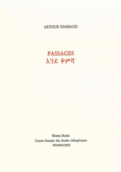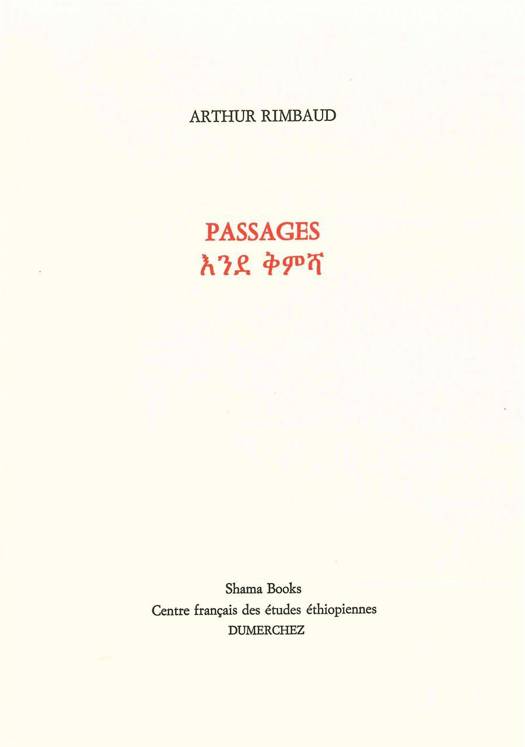 Passages offre une version bilingue de textes essentiels du poète dont l'Ethiopie ne connaissait à ce jour que la vie d'explorateur et de marchand, familier du Négus Ménélik et du Ras Makonnen, le père du Ras Tafari, futur Empereur (Négus) sous le nom d'Haïlé Sélassié 1er.