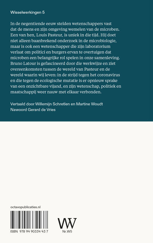 In de negentiende eeuw stelden wetenschappers vast dat de mens en zijn omgeving wemelen van de microben. Een van hen, Louis Pasteur, is uniek in die tijd. Hij doet niet alleen baanbrekend onderzoek in de microbiologie, maar is ook een wetenschapper die zijn laboratorium verlaat om politici en burgers ervan te overtuigen dat microben een belangrijke rol spelen in onze samenleving. Bruno Latour is gefascineerd door die werkwijze en ziet overeenkomsten tussen de wereld van Pasteur en de wereld waarin wij leven: in de strijd tegen het coronavirus en die tegen de ecologische mutatie is er opnieuw sprake van een onzichtbare vijand, en zijn wetenschap, politiek en maatschappij weer nauw met elkaar verbonden.