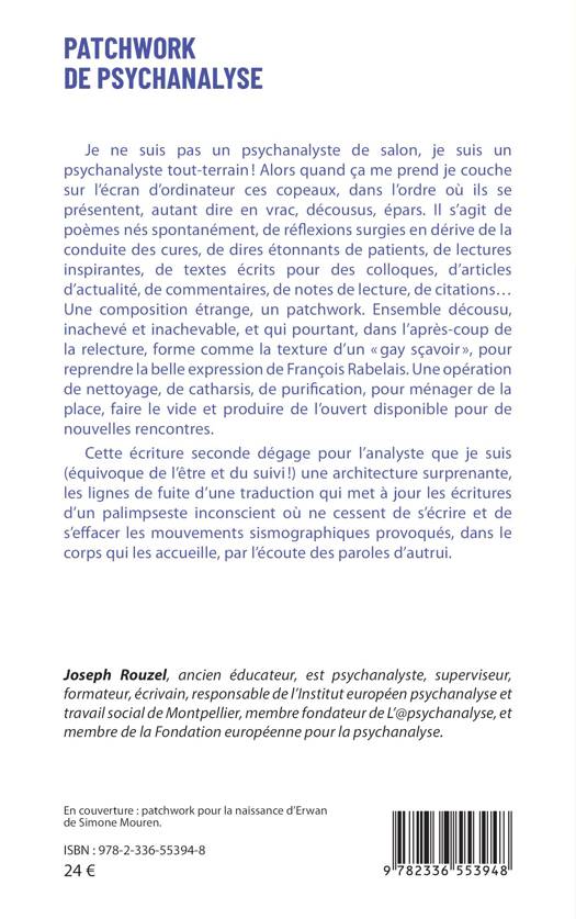 Je ne suis pas un psychanalyste de salon, je suis un psychanalyste tout-terrain ! Alors quand ça me prend je couche sur l'écran d'ordinateur ces copeaux, dans l'ordre où ils se présentent, autant dire en vrac, décousus, épars. Il s'agit de poèmes nés spontanément, de réflexions surgies en dérive de la conduite des cures, de dires étonnants de patients, de lectures inspirantes, de textes écrits pour des colloques, d'articles d'actualité, de commentaires, de notes de lecture, de citations...Une composition étrange, un patchwork. Ensemble décousu, inachevé et inachevable, et qui pourtant, dans l'après-coup de la relecture, forme comme la texture d'un gay sçavoir, pour reprendre la belle expression de François Rabelais. Une opération de nettoyage, de catharsis, de purification, pour ménager de la place, faire le vide et produire de l'ouvert disponible pour de nouvelles rencontres. Cette écriture seconde dégage pour l'analyste que je suis (équivoque de l'être et du suivi !) une architecture surprenante, les lignes de fuite d'une traduction qui met à jour les écritures d'un palimpseste inconscient où ne cessent de s'écrire et de s'effacer les mouvements sismographiques provoqués, dans le corps qui les accueille, par l'écoute des paroles d'autrui.