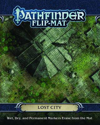 Whether you are cutting away through a jungle in search of treasure or uncovering a civilization lost under the waves, Pathfinder Flip-Mat: Lost City has you covered. Each side of the Flip-Mat features the ruins of a long-lost city, one hidden in the depths of a rainforest and the other on the ocean floor! Don't waste your time sketching when you could be playing. With Pathfinder Flip-Mat: Lost City, you'll be ready next time your players want to search the unknown! This portable, affordable map measures 24" x 30" unfolded, and 8" x 10" folded. Its coated surface can handle any dry erase, wet erase, or even permanent marker. Usable by experienced GMs and novices alike, Pathfinder Flip-Mats fit perfectly into any Game Master's arsenal! On tabletops across the world, the Flip-Mat Revolution is changing the way players run their fantasy roleplaying games! Why take the time to sketch out ugly scenery on a smudgy plastic mat when dynamic encounters and easy clean-up is just a Flip away? "Price Includes VAT"
