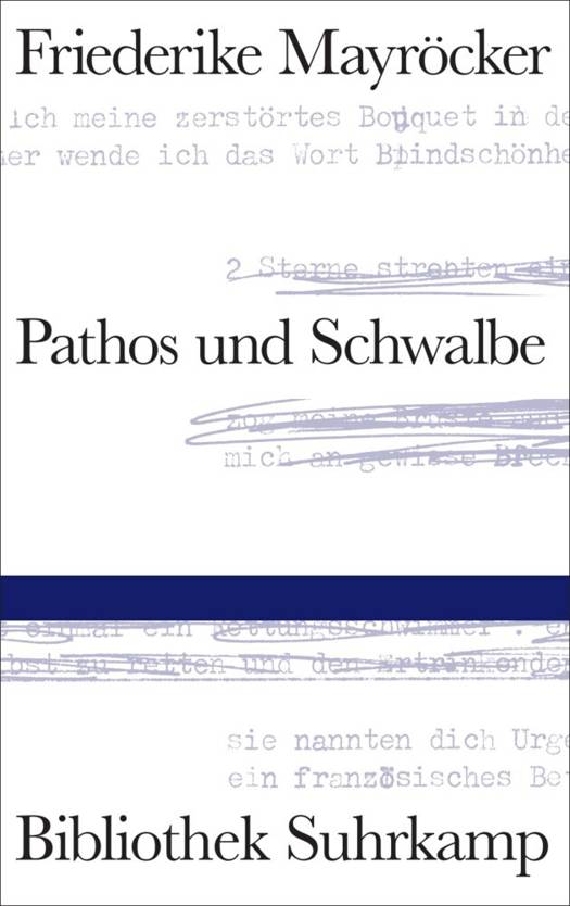 Pathos und Schwalbe, das neue Buch von Friederike Mayröcker, ist Radikalität und Unbeugsamkeit, ist Überfluss und Präzision. Und es ist das bewegende Zeugnis eines Lebens, das nur ein Ziel kennt: »ich müszte den ganzen Tag für mich haben um unbändig, ich meine schreiend, schreiben zu können.«