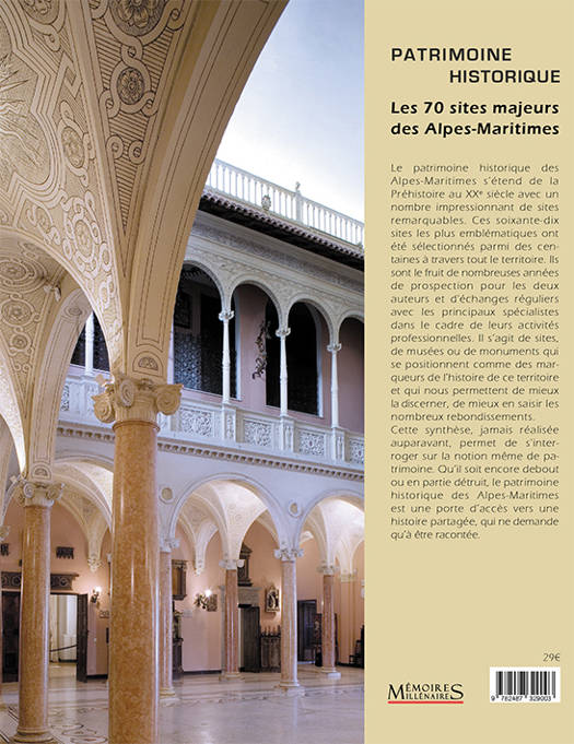 Le patrimoine historique des Alpes-Maritimes s'étend de la Préhistoire au XXe siècle avec un nombre impressionnant de sites remarquables. Ces sites emblématiques ont été sélectionnés parmi des centaines à travers tout le territoire. Ils sont le fruit de nombreuses années de prospection pour les deux auteurs et d'échanges réguliers avec les principaux spécialistes dans le cadre de leurs activités professionnelles. Il s’agit de sites, de musées ou de monuments qui se positionnent comme des marqueurs de l’histoire de ce territoire et qui nous permettent de mieux la discerner, de mieux en saisir les nombreux rebondissements. Cette synthèse, jamais réalisée auparavant, permet de s'interroger sur la notion même de patrimoine. Qu’il soit encore sur debout ou en partie détruit, le patrimoine historique des Alpes-Maritimes est une porte d’accès vers une histoire partagée, qui ne demande qu’à être racontée.