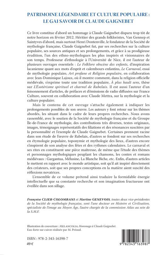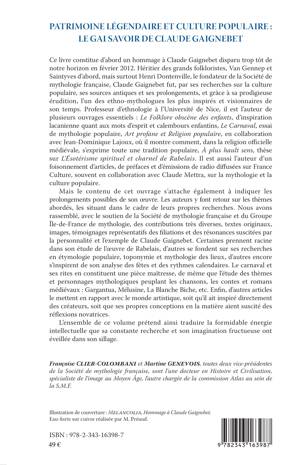 Ce livre constitue d'abord un hommage à Claude Gaignebet disparu en février 2012, qui fut l'un des ethno-mythologues les plus inspirés et visionnaires de son temps, par ses recherches sur la culture populaire et ses sources antiques. Mais le contenu de cet ouvrage s'attache également à indiquer les prolongements possibles de son oeuvre. Les auteurs font un retour sur les thèmes abordés, les situant dans le cadre de leurs propres recherches.