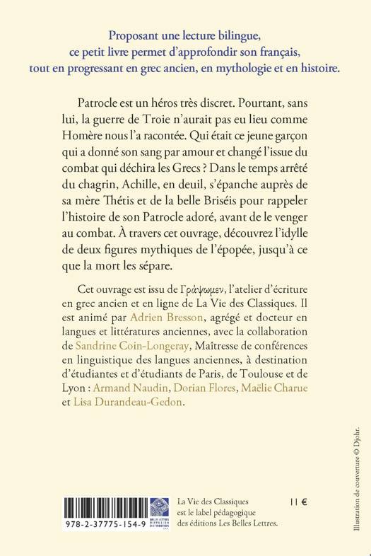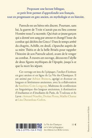 Patrocle est un héros très discret. Pourtant, sans lui, la guerre de Troie n’aurait pas eu lieu comme Homère nous l’a racontée. Qui était ce jeune garçon qui a donné son sang par amour et changé l’issue du combat qui déchira les Grecs ? Dans le temps arrêté du chagrin, Achille, en deuil, s’épanche auprès de sa mère Thétis et de la belle Briséis pour rappeler l’histoire de son Patrocle adoré, avant de le venger au combat. À travers cet ouvrage, découvrez l’idylle de deux figures mythiques de l’épopée, jusqu’à ce que la mort les sépare.