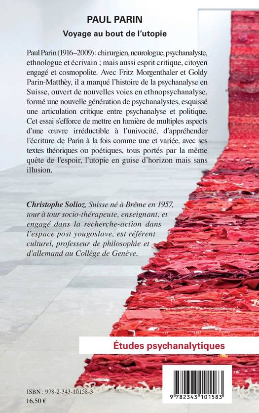 Paul Parin (1916 2009) : chirurgien, neurologue, psychanalyste, ethnologue et écrivain ; mais aussi esprit critique, citoyen engagé et cosmopolite. Avec Fritz Morgenthaler et Goldy Parin-Matthèy, il a marqué l’histoire de la psychanalyse en Suisse, ouvert de nouvelles voies en ethnopsychanalyse, formé une nouvelle génération de psychanalystes, esquissé une articulation critique entre psychanalyse et politique. Cet essai s’efforce de mettre en lumière de multiples aspects d’une oeuvre, avec ses textes théoriques ou poétiques, tous portés par la même quête de l’espoir, l’utopie en guise d’horizon mais sans illusion.