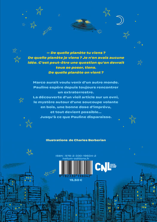 Marco aurait voulu venir d'un autre monde. Pauline espère depuis toujours rencontrer un extraterrestre. La découverte d'un vieil article sur un ovni, le mystère autour d'une soucoupe volante en bois, une bonne dose d'imprévu, et tout devient possible... Jusqu'à ce que Pauline disparaisse.