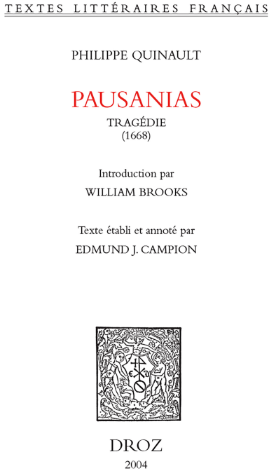 Philippe Quinault (1635-1688) fait représenter en novembre 1668 son avant-dernière tragédie, Pausanias, écrite à la hâte en sorte de combler une lacune dans le répertoire de la troupe de l’Hôtel de Bourgogne. Inspiré par l’Andromaque de Racine, créée un an auparavant, Pausanias n’en est néanmoins pas une répartie sommaire. Désavouant la tradition selon laquelle le théâtre serait une littérature d’élite, Quinault ambitionne de châtier quelques-unes des fautes qui auraient entaché l’ouvrage de son jeune rival. Ce faisant, il nous livre Démarate, héroïne furieuse et violente qui ourdit un dénouement inoubliable, et Cléonice, dernier rôle endossé par la célèbre Mademoiselle Du Parc qui avait aussi créé celui d’Andromaque pour Racine.