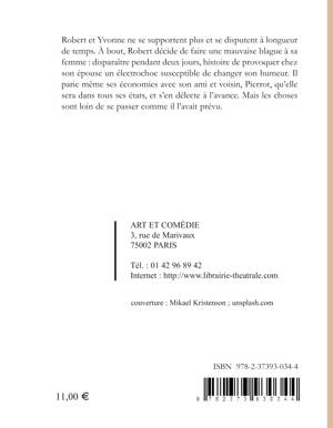 Robert et Yvonne ne se supportent plus et se disputent à longueur de temps. à bout, Robert décide de faire une mauvaise blague à sa femme: disparaître pendant deux jours, histoire de provoquer chez son épouse un électrochoc susceptible de changer son humeur. Il parie même ses économies avec son ami et voisin, Pierrot, qu'elle sera dans tous ses états, et s'en délecte à l'avance. Mais les choses sont loin de se passer comme il l'avait prévu.