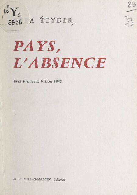 D’origine polonaise, élevée en Belgique pendant l’Occupation - dont sa famille a beaucoup souffert - Vera Feyder décide, très jeune, de se consacrer à la carrière artistique. Malgré ses activités professionnelles, elle ne cesse pas pour autant de s’attacher - avec une stricte exigence - à son œuvre poétique proprement dite, et publie "Le temps démuni" (1961), "Ferrer le sombre" (Rougerie). "Pays, l'absence", qui vient d’obtenir le Prix Villon, confirme les qualités d’une écriture qui maintient, jusqu’à leur extrême équilibre, intelligence et sensibilité.
