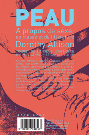 Activiste féministe lesbienne radicale depuis les années 1970, Dorothy Allison a connu le succès avec ses romans (L'Histoire de Bone, Retour à Cayro). En 1994, elle publie Peau, un recueil d'essais. Elle y parle de son enfance, d'inceste, de lesbophobie. Elle raconte son engagement féministe, sa sexualité, les « Sex Wars » des années 1980. Elle partage ses réflexions sur la littérature : comment écrire l'extrême misère sociale, comment écrire sur le sexe ? Un livre tout à la fois intime, décapant et profondément politique, réédité avec sept textes inédits en français.