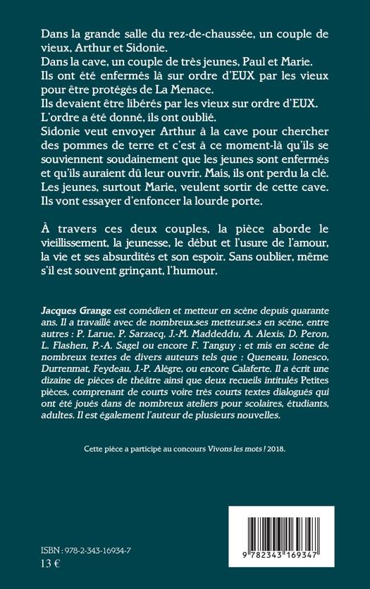 Dans la grande salle, un cpouple de vieux, Arthur et Sidonie. Dans la cave, un couple de très jeunes, Paul et Marie. Ils ont été enfermés sur ordres d'EUX par les vieux pour être protégés de La Menace. Ils devaient être libérés par les vieux sur ordre d'EUX. L'ordre a été donné, ils ont oublié. À travers ces deux couples, la pièce aborde le vieillissement, la jeunesse, le début et l'usure de l'amour, la vie et ses absurdités et son espoir. Sans oublier, même s'il est souvent grinçant, l'humour.