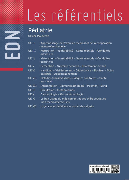 Proposant des ouvrages de cours de référence, la collection EDN - LES REFERENTIELS tient compte de l’évolution des enseignements et des besoins des étudiants qui préparent les EDN. Ses auteurs – tous professeurs universitaires - s’attachent à fournir au lecteur un outil complet de révisions, conforme au programme du concours. Dans cet ouvrage, le programme de la spécialité Pédiatrie est traité de façon complète, avec :