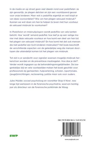In Pedofielen en misbruikplegers wordt pedofilie van vele kanten belicht. Hoe ‘wordt’ iemand pedofiel, hoe leef je op een veilige manier met deze seksuele voorkeur en hoe komt een deel van hen tot het plegen van seksueel misbruik? En hoe komt het dat ook mensen die niet pedofiel zijn toch kinderen misbruiken? Het boek beschrijft de verschillende aspecten van de geleidelijke weg die mensen doorlopen die uiteindelijk komen tot het plegen van misbruik.