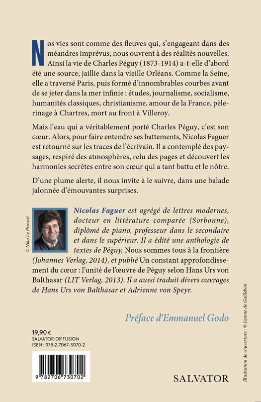 Nos vies sont comme des fleuves qui, s'engageant dans des méandres imprévus, nous ouvrent à des réalités nouvelles. Ainsi la vie de Charles Péguy (1873-1914) a-t-elle d'abord été une source, jaillie dans la vieille Orléans. Comme la Seine, elle a traversé Paris, puis formé d'innombrables courbes avant de se jeter dans la mer infinie : études, journalisme, socialisme, humanités classiques, christianisme, amour de la France, pèlerinage à Chartres, mort au front à Villeroy. Mais l'eau qui a véritablement porté Charles Péguy, c'est son cÅur. Alors, pour faire entendre ses battements, Nicolas Faguer est retourné sur les traces de l'écrivain. Il a contemplé des paysages, respiré des atmosphères, relu des pages et découvert les harmonies secrètes entre son cÅur qui a tant battu et le nôtre. D'une plume alerte, il nous invite à le suivre, dans une balade jalonnée d'émouvantes surprises.