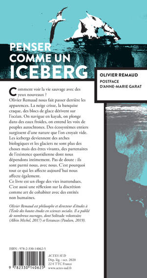Olivier Remaud nous fait passer derrière les apparences. La neige crisse, la banquise craque, des blocs de glace dérivent dans l'océan. On navigue en kayak, on plonge dans des eaux froides, on entend les voix de peuples autochtones. Des écosystèmes entiers surgissent d'une nature que l'on croyait vide. Les icebergs deviennent des arches biologiques et les glaciers ne sont plus des choses mais des êtres vivants, des partenaires de l'existence quotidienne dont nous dépendons intimement. Pas de doute : ils sont parmi nous, avec nous. C'est pourquoi tout ce qui les affecte aujourd'hui nous affecte également.