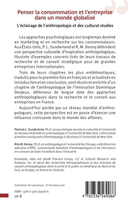 Les approches psychologiques ont longtemps dominé en marketing et en recherche sur les consommateurs. Aux États-Unis, P. L. Sunderland et R. M. Denny défendent une perspective culturelle d'inspiration anthropologique, illustrée d'exemples concrets tirés de leurs travaux de recherche et de conseil stratégique pour de grandes entreprises internationales. Trois de leurs chapitres les plus emblématiques, traduits pour la première fois en français et actualisés en introduction et en conclusion, sont réunis et enrichis d'un chapitre de l'anthropologue de l'innovation Dominique Desjeux, défenseur de longue date des approches anthropologiques dans la recherche et le conseil aux entreprises en France. Aujourd'hui portée par un réseau mondial d'anthropologues, cette perspective est en passe d'exercer une influence croissante dans le monde des affaires.