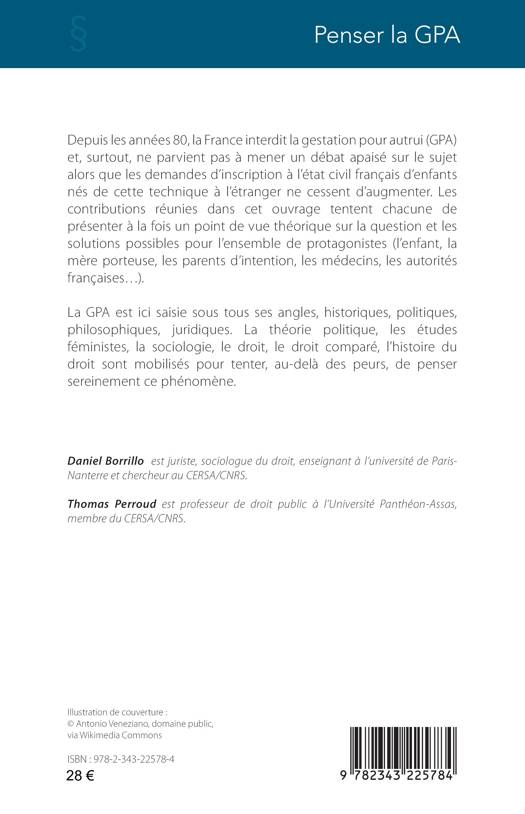 Depuis les années 80, la France interdit la gestation pour autrui (GPA) et, surtout, ne parvient pas à mener un débat apaisé sur le sujet alors que les demandes d’inscription à l’état civil français d’enfants nés de cette technique à l’étranger ne cessent d’augmenter. Les contributions réunies dans cet ouvrage tentent chacune de présenter à la fois un point de vue théorique sur la question et les solutions possibles pour l’ensemble de protagonistes (l’enfant, la mère porteuse, les parents d’intention, les médecins, les autorités françaises...). La GPA est ici saisie sous tous ses angles, historiques, politiques, philosophiques, juridiques. La théorie politique, les études féministes, la sociologie le droit, le droit comparé, l’histoire du droit sont mobilisés pour tenter, au-delà des peurs, de penser sereinement ce phénomène.