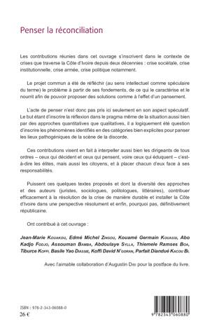 Les contributions réunies dans cet ouvrage s'inscrivent dans le contexte de crises que traverse la Côte d'Ivoire depuis deux décennies: crise sociétale, crise institutionnelle, crise armée, crise politique. Le projet commun a été de réfléchir le problème à partir de ses fondements, de ce qui le caractérise et le nourrit afin de pouvoir proposer des solutions comme à l'effet d'un pansement.