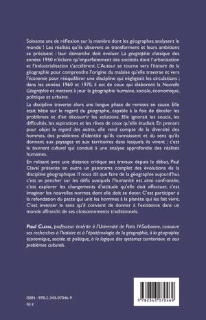 La géographie classique des années 50 n'éclaire qu'imparfaitement des sociétés dont l'urbanisation et l'industrialisation s'accélèrent. En relisant avec une distance critique ses travaux, Paul Claval présente un panorama complet des évolutions de la discipline qui se doit de rendre compte de la diversité des hommes, de leurs problèmes d'identité, du sens qu'ils donnent aux paysages et territoires dans lesquels ils vivent : ce tournant culturel conduit à une analyse approfondie des réalités humaines.