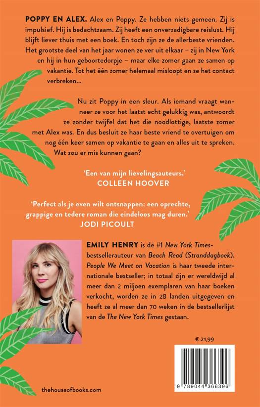 Nu zit Poppy in een sleur. Als iemand vraagt wanneer ze voor het laatst echt gelukkig was, antwoordt ze zonder twijfel dat het die noodlottige, laatste zomer met Alex was. En dus besluit ze haar beste vriend te overtuigen om nog één keer samen op vakantie te gaan en alles bij te leggen. Wat zou er mis kunnen gaan?