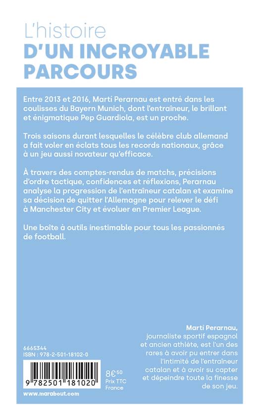 À travers des comptes-rendus de matchs, précisions d’ordre tactique, confidences et réflexions, Perarnau analyse la progression de l’entraîneur catalan et examine sa décision de quitter l’Allemagne pour relever le défi à Manchester City et évoluer en Premier League. Une boîte à outils inestimable pour tous les passionnés de football.