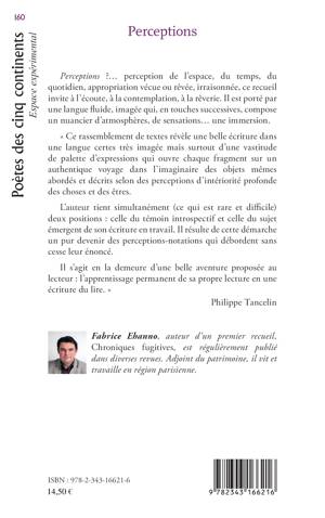 Perceptions ?... perception de l'espace, du temps, du quotidien, appropriation vécue ou rêvée, irraisonnée, ce recueil invite à l'écoute, à la contemplation, à la rêverie. Il est porté par une langue fluide, imagée qui, en touches successives, compose un nuancier d'atmosphères, de sensations Une immersion.