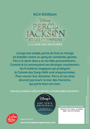 Lorsqu'une simple partie de foot se change en bataille contre un gang de cannibales géants, Percy le demi-dieu a un terrible pressentiment. Comme le lui annonçaient ses étranges cauchemars, les frontières magiques qui protègent la Colonie des Sang-Mêlés sont empoisonnées. Pour sauver leur domaine, Percy et ses amis devront parcourir la mer des Monstres, qui porte bien son nom.